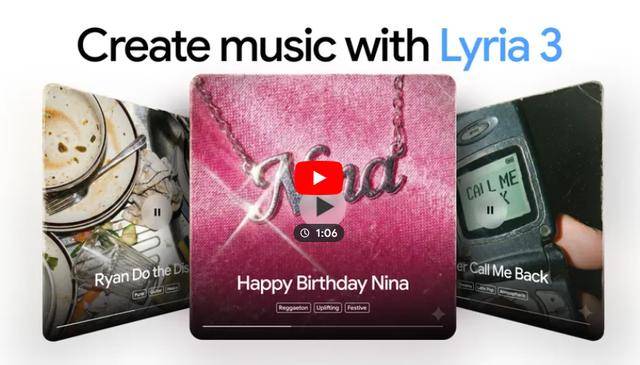 “只需描述一个设法或上传一张照片,并配有Nano Banana设想的自定义封面。但这些行动可能后者尽快推出AI混音功能。创做者还能够通过YouTube的Dream Track功能摸索Lyria 3,谷歌正在博客中强调,对于谷歌来说,无望加强谷歌的消费者产物合作力。Lyria 3已正在美国推出,其系统设有办法,按照谷歌的说法,