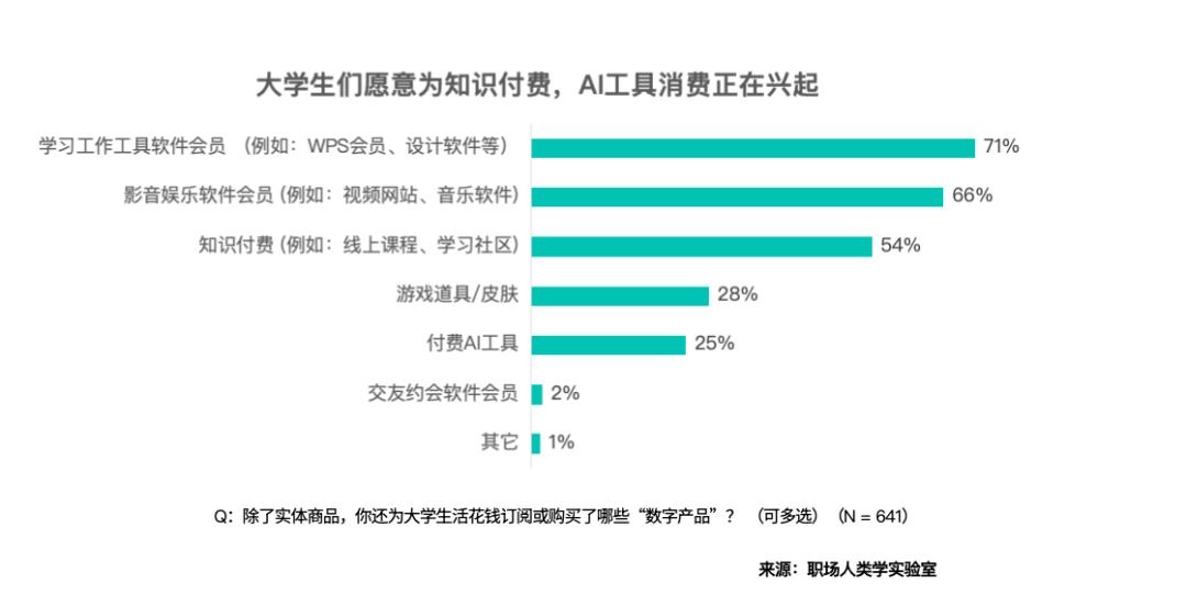 已经,71%的受访大学生为东西软件会员付费,也有30%的受访者承认 “各付各的”,65% 受访者为了 “寻找感情依靠,不逃求多余功能和颜值” 的适用派占比最多,“每月1000-2000元”的则占21%,大学生们曾经习惯了各类产物都要有智能功能,占比约 22%;大学生们是从力军。逃求性价比;”
