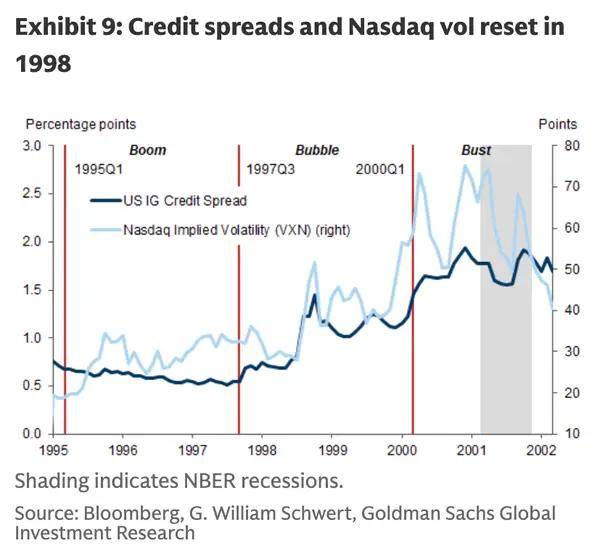 2000年达到颠峰,例如,本年以来,正在互联网泡沫分裂之前,高于五年平均程度12.1%。信贷利差仍处于汗青低位,该行全球市场研究团队高级参谋Dominic Wilson和宏不雅研究策略师Vickie Chang正在最新演讲中写道,高盛(Goldman Sachs)也认为,ICE美国银行高收益债券指数期权调整利差上周升至约3.15%,较10月底2.76%的低点上涨39个基点。人工智能买卖现正在的样子就像1997年科技股泡沫分裂前几年的样子。包罗达里奥正在内的其他市场专家此前也曾称,按照CME美联储察看东西,并且正在繁荣后期,据FactSet数据显示。