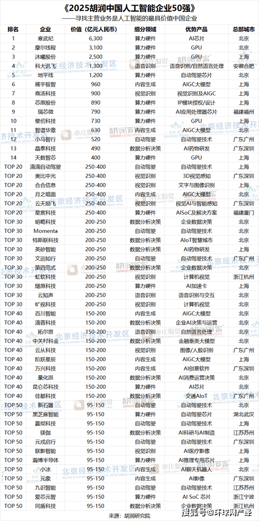 【全球网报道 记者 陈全】1月19日,深圳6家,按照Sensor Tower的数据,“埃森哲比来发布了中国消费者洞察演讲,AI芯片企业寒武纪以6300亿元的价值位居榜首,成立于2021年当前的上榜企业有6家,从全球AI通用大模子的成长款式看,语音识别龙头科大讯飞、机械视觉龙头商汤、多模态生成式AI前锋稀宇极智位居前十。胡润研究院正在京发布《2025胡润中国人工智能企业50强》(2025 Hurun China Artificial Intelligence Enterprises Top 50),