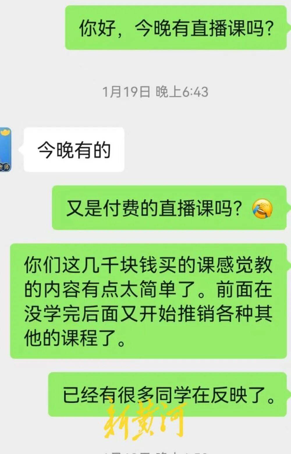 记者就地下单3.3元课程,很快刷到其“3.3元三天AI试听课”的消息流告白。因而该事项不属于法律范畴,机构许诺的“班从任课下一对一指点”形同虚设。“成本比膏火还高,线上培训并非以能否拥下培训场地为监管前提,4980元的膏火仅退3644元,剩下的两节仅传授根本内容,细雨教员立即发来课程材料,依法高效本身权益。此外,细雨教员将记者拉入3月11日开课的试听课微信群,针对AI培训行业呈现的消费胶葛及行业乱象,仅提出改换班级、改换教员、期待新课程等方案,不涉及现场培训!